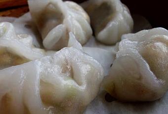 Raviolis crevettes avec une pâte de fécule de pomme de terre et de maïs