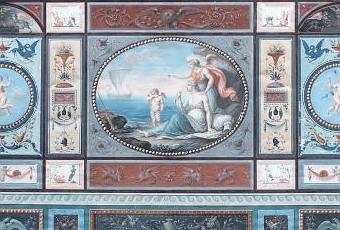 centre une composition à sujet antique : "Ariane abandonnée". Gouache sur vélin. 29,5 x 50 cm (Petits manques). © Beaussant Lefèvre. »