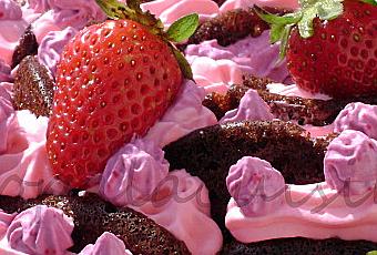 J'ai donc fait un gâteau 'cake au yaourt' au chocolat (100g de chocolat fondu par yaourt), j'ai fait de la chantilly rose et de la mauve, j'ai lavé mes fraises, je me suis plantée dans mes calculs et mon gâteau a débordé...