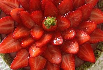 Montage et finition : fraise, gélatine pour nappage, confiture de fraises.