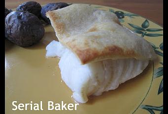 Découper dans la pâte quatre morceaux rectangulaires de la taille des morceaux de cabillaud. Déposer la croûte sur le dessus des morceaux. Remettre au four et cuire pendant 4-5 min environ (la croûte doit être cuite).