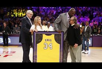 Mardi soir à Los Angeles, une petite cérémonie avait été organisée lors de la mi-temps du match entre les Lakers et les Mavericks en faveur du pivot légendaire Shaquille O'Neal. Celui-ci a vu son maillot n°34 rejoindre le plafond du Staple Center aux côtés de ses illustres prédécesseurs. On appelle cela dans le jargon "se faire retirer", c'est-à-dire que plus aucun joueur des Lakers ne pourra porter le numéro 34, symbole du Shaq durant 8 saisons, entre 1996 et 2004