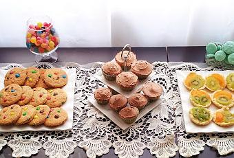 السلام عليكم و رحمة الله و بركاتهJe vous poste les photo de ma "sweet table " à l'occasion de la naissance de mon fils .Je vous posterais les recettes au fur et a mesure .Les tartellette ont gentillement été apporter par mon amie Oum ZaynebIl y avait : Macaron au nutella , Cookies m&m's ,Brownies Pistache, Choux chantilly , Cupcake ganache chocolat montée