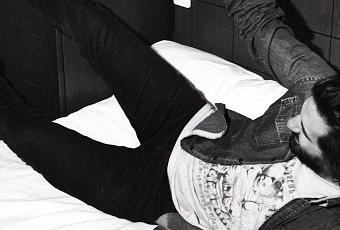 Ca faisait longtemps que nous n’avions pas eu le privilège d’accéder à la sacro-sainte chambre d’hotel de l’artiste… En cette après-midi parisienne, les gars de The Men sont plutôt joueurs. Ils nous invite à réveiller leur ingé son pendant sa sieste. On va donc sortir l’animal de sa torpeur, en espérant qu’il a de l’humour et qu’il pèse moins de 200 kg. Après deux trois grognements et malgré le flash, il semble prendre les choses plutôt bien. Chacun son tour, les membres du groupe passent dans la salle de bain pour une séance de portrait en lumière naturelle.