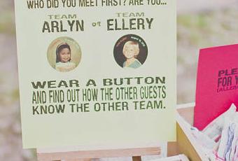Une idée rigolote pour les invités, un point de départ pour entamer la conversation au cocktail ou à table, et l'occasion de leur faire porter de jolis badges sur les photos !