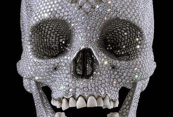 Cette " oeuvre d'art " réalisée par l'artiste Damien Hirst se nomme "For The Love Of God" ( Pour l'amour de dieu en français ). C'est un moulage d'un crâne humain incrusté de 8 601 diamants et est évaluée à 74 millions d'euros.