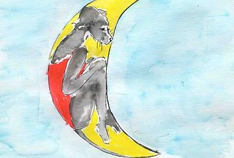 Mon Dieu que le temps passe vite ! Il me semble que c’était hier que j’apprenais à mon fils Zéphyr à ne pas tout prendre au premier degré. Je lui expliquais le sens qu’il faut donner à certaines expressions : http://memphis.typepad.com/la_vie_de_memphis/2007/03/index.html . Sans toutefois lui en donner l’origine : il y a des sites spécialisés que je ne prétends pas essayer de concurrencer. Leurs auteurs ont une culture bien supérieure à la mienne. Je vous y renverrai d’ailleurs si vous souhaitez une documentation plus approfondie. Mais voilà, si mon fils a grandi et compris la différence entre le sens propre et le sens figuré, sa jeune sœur, Alizé, a pris sa succession. Tu n’as pas besoin de fusée ou autre navette pour “être dans la lune”, ma chérie. Même pas besoin d’attendre l’obscurité. Qu’il fasse soleil, qu’il pleuve ou que la nuit soit tombée, tu as du mal à fixer ton attention et tes pensées s’évadent. Tu n’es plus avec nous et ce ne serait pas pire si tu habitais une autre planète. Redescends parmi nous, je t’en prie ! Même si un croissant de lune te ferait un joli petit logement.