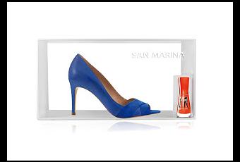 Bourjois s'invite chez San Marina : retrouvez dès aujourd'hui la première Color Box San Marina & Bourjois composée de cette jolie paire d’escarpins bleus et du vernis So Laque Orange Création. Des couleurs complémentaires qui appellent l'été ! La Color box #1 sera disponible jusqu'au 20 avril au prix de 89,90€ (prix de la chaussure vendue seule).