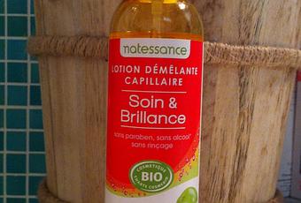 Je viens aujourd'hui vous faire partager mon avis sur la lotion démêlante capillaire "soin & brillance" de Natessance.
