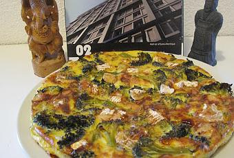 4: Déposez les brocolis dans un plat en silicone. Couvrez-les avec l'appareil aux oeufs, disposez les dés de camembert et enfournez pour 30 min à 180°C.