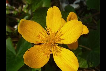 C’est une fleur d’un beau jaune brillant, un peu comme le bouton d’or mais en plus grand, que l’on voit en grand nombre au printemps dans les zones humides. Le populage des marais, de la même famille que les renoncules, est aussi appelé « souci d’eau ». Plus le sol est trempé, plus il se plait.