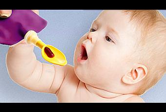 Délivrer alors l’aliment sur la Baby’Clips en appuyant légèrement sur la gourde et approcher la cuillère de la bouche de bébé.