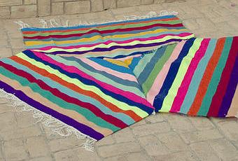 Le célèbre site de design et de décoration Made In Design édite ses propres objets et mobilier, parmi lesquels ce kilim conçu par la designer française Matali Crasset et réalisé à la main par des artisans de Nefta en Tunisie où cette dernière a également imaginé un hôtel : le Dar Hi. Ce que j’aime c’est la forme particulière du tapis (il est composé de trois tapis reliés les uns aux autres), son style ethnique et ses couleurs ! Ce tapis de convivialité multicolore en laine de mouton tissée est fabriqué selon un savoir-faire ancestral et dans le cadre du Projet Palm Lab rassemblant des artisans de la région. La direction artistique est assurée par Matali Crasset et la collection issue de ce projet est vendue exclusivement sur Made In Design. Le prix de ce tapis : 85 € seulement !