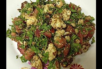 - Une fois le chou-fleur est rôti, l'ajouter au persil et tomate