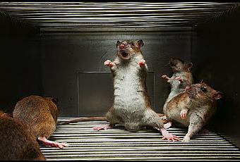 Quels que soient les individus, ils finissaient toujours par se répartir les mêmes rôles. L’expérience fut recommencée dans une cage plus vaste contenant deux cents individus. Les rats se battirent toute la nuit. Au matin, on retrouva trois rats crucifiés dont les autres avaient arraché la peau.Moralité : plus la population s’accroît, plus la cruauté envers les souffre-douleur augmente. Simultanément, les exploiteurs de la grande cage suscitèrent une hiérarchie de lieutenants afin de répercuter leur autorité sans même se donner la peine de terroriser directement les exploités.
