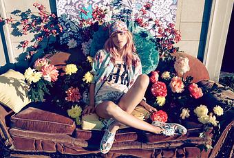 Ambiance jungle-californian très fleuri pour la ligne Divided de H&M qui mets en scène le top Amanda Noorgard