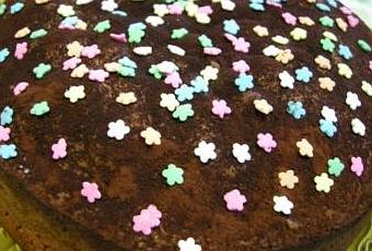 - décorer le dessus à votre façon. Personnellement, j'ai recouvert de poudre de cacao et parsemé des petites décorations en fondant.