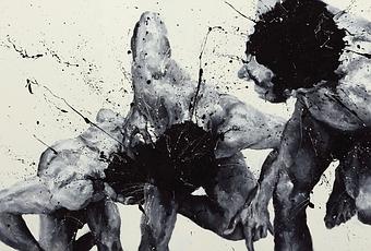 Issu du milieu publicitaire, l’ex directeur artistique italien Paolo Troilo s’est reconverti en peintre néo-renaissant avec des oeuvres en noir et blanc d’une incroyable puissance visuelle. Sans outils, l’artiste utilise ses doigts pour capturer des corps souvent aux prises avec leur enfermement qu’il tente de libérer à travers une gestuelle dynamique et expressionniste. On pense tout d’abord à l’art brut et radical des peintures préhistoriques, puis aux dessins anatomiques de Michel-Ange et enfin aux fresques monumentales de Jackson Pollock et parce qu’on est un peu geek, aux clips noir et blanc d’un certain barbu-escroc qui se fait appelé « Garçon en bois ».