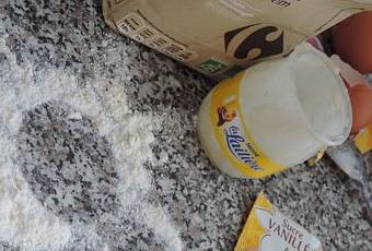 alors aujourd'hui on s'est attaqué à l'étape number one de notre Everest : les gâteaux au yaourt