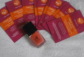 Déjà comme je l'ai dit, à remercie mes blopines, mais aussi à te présenter le vernis que Jo m'a envoyé. Il est vraiment très joli. C'est le Mango Madness de chez E.L.F. Je possède déjà une teinte similaire (le Corail Fire) et elles me font penser en hiver, en été, en automne et au printemps.">en hiver, en été, en automne et au printemps.">à l'été et au soleil. Je pense qu'en juillet, j'aurais l'impression d'avoir de jolies mains bronzées par le soleil (pour moi qui ai une peau de rousse autant dire que c'est rare). L'application est très facile et le temps de séchage acceptable. Je m'en suis servi pour deux manucures. J'ai posé trois couches pour ma première car.">car.">manucure car j'avais besoin d'une base bien opaque. Pour la seconde, deux ont subi.