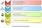 Zoho CRM Entreprise Edition offre donc la possibilité de créer une structure de rôles, profil, usager et groupe qui chacun possède leurs droits et permissions. Cette nouvelle structure hiérarchique permet au gestionnaire du compte de bien déterminer les rôles de chacun de ses membres.