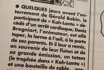 Denis Borgniard remet la légion d'honneur à titre postume sous forme du totem de l'émission à la famille du candidat décédé. Un totem...d'immunité. Vu comme ça, de loin, ça fait , plus que fétichiste, un ornement de quincaillerie tiré d'un film de science fiction de série Z. Surréaliste.