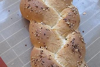 (450ml) d'eau tiède- 80 g (100ml) d'huile de tournesol- 1 càs de sel- graines pour décorer (sésame, pavot...)