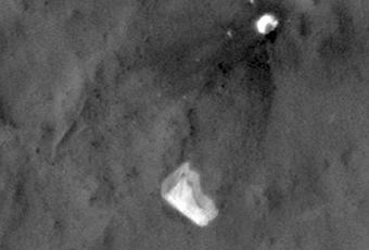 Quelques jours après, la sonde spatiale Mars Reconnaissance Orbiter (MRO), a transmis des photos du rover en pleine descente présentant les traces laissées par les propulseurs des fusées.