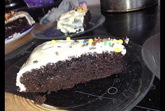 Ingrédients :· 300g sucre· 250g farine· 80ml chocolat en poudre sans sucre· 10ml leveur chimique · 250ml eau· 30ml gelée de fruits (j’ai utilisé la gelée de groseille)· 250ml de mayonnaise · Une petite cuiller de vanilleRéalisation:· Mettre les ingrédients secs dans un bol et mélanger· Mettre les ingrédients liquides dans un autre bol et mélanger· Verser le bol des ingrédients liquides dans le bol des ingrédients secs et mélanger · Mettre au four pendant 35/45 minutes a 180°