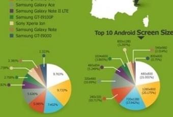 Côté smartphones, Galaxy S II et S III sont systématiquement parmi les 10 premiers smartphones utilisés. En Inde, environ 30% des utilisateurs de smartphones sous Android dispose d’un affichage de 240×320 pixels, de vieux modèles donc (ou tout simplement basiques).