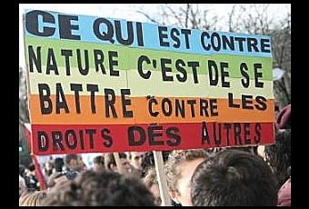 Emmanuel : Tu as raison, Pascal, on ne choisit pas forcément sa sexualité. Je le reconnais parfaitement. Tu sais, si nous pouvions nous retrouver, ça me ferait plaisir. Et je ne suis pas d'accord avec beaucoup de choses qui sont dites, soit pour, soit contre ce projet de loi. Mais c'est sur la nature d'un "droit" que nous avons une divergence de compréhension. Christiane Taubira a parfaitement raison lorsqu'elle reconnait que ça n'est pas le mariage qui est étendu à tous, c'est la "nature du mariage" qui a été changée, de manière à ce que tous y aient "droit". Et encore une fois, ce qui nous paraît dans ce cadre le plus dangereux, c'est ce que cela va avoir comme conséquence pour les enfants. Pas pour les tiens, bien sûr, car ils connaissent leur père et leur mère, même si vous avez changé de situation matrimoniale. Mais Je parle des enfants - et nous allons arriver là, tu le sais bien - qui seront nés dans des conditions telles qu'ils ne connaîtront pas l'un ou l'autre - ou peut-être même qui sait, un jour, les deux, non pas parce que l'un ou l'autre ou les deux auront disparu, mais en raison de la manière même dont ils auront été conçus. Pour cela, LA LOI aura décidé qu'ils n'ont pas besoin de savoir. Quelle discrimination, tout de même !