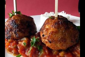 Servez les boulettes avec la sauce à la tomate et du riz blanc.