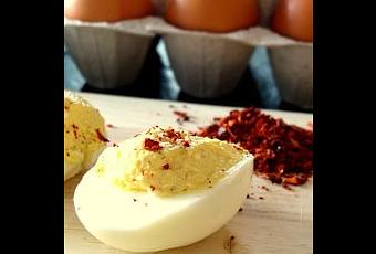 Quand la préparation est bien homogène, remplir délicatement chaque blanc d'oeuf avec une petite cuillère à café.