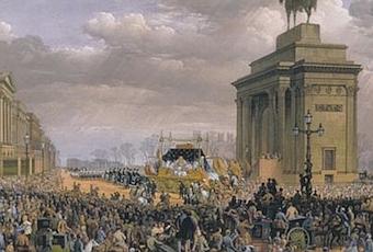 Lors de la cérémonie d’enterrement du Duc de Wellington en 1852, un million de personnes – sur une population totale de 27,5 million – s’y sont rendues afin de lui rendre un dernier hommage. Au sein de la population remplissant les rues des quartiers de Constitution Hill jusqu’à la chapelle Saint Paul lors du passage du convoi funéraire se trouvaient de nombreuses personnes qui n’approuvaient pas sa politique.