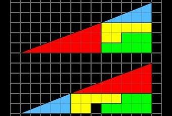 Evidemment la surface du carré noir provient du fait que ces deux grandes surfaces multicolores ne sont pas des triangles rectangles mais des quadrilatères.