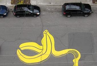 Activiste au départ pour la mise en place de pistes cyclables plus praticables et plus lisibles dans les quartiers de Montréal, Peter Gibson -alias Roadsworth quand il enfile son super masque de super-héros- a décidé depuis 2001 de se s’attaquer aux routes et aux trottoirs. Mêlant poésie urbaine, graffiti et intervention murale proche du land art, l’artiste signe des fresques drôles, joueuses où le changement d’échelle et les pochoirs utilisés amènent le piéton vers un quotidien transformé et extra-ordinaire.