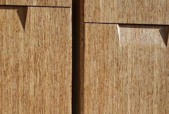 Avec cette collection Misfit, le designer Ryan Tretow a imaginé des meubles réalisés exclusivement à partir de copeaux de bois agglomérés. Les copeaux sont orientés dans le même sens et collés pour composer des panneaux de contreplaqué particulièrement esthétiques. L’atout supplémentaire est que la collection est aussi une réponse au gaspillage, puisque les copeaux de bois sont issus du recyclage. Il est cependant bien connu que ce matériau composite résiste mal aux intempéries extérieures : les copeaux ont tendance à moisir et à gonfler au contact de l’eau ou d’un air humide. C’est la raison pour laquelle cette belle collection est réservée pour un usage exclusivement intérieur.