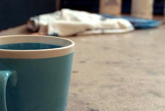 Le thé fume dans le mug.