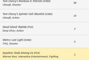 GTA 5 fait carton pleins puisque celui-ci se retrouve en 1er et 3eme place sur Xbox 360 et PS3, au milieu se place The last of Us sur PS3 uniquement.