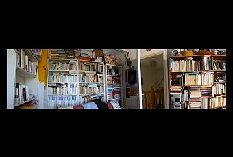 Avant de vous proposer le texte que j’ai écrit, je vous explique mon cheminement pour y aboutir. Inspiré par ''Le nouveau magasin'' de monsieur Hubert Haddad, ''Ecrire une nouvelle'', j’ai pris au hasard des ouvrages (romans ou non) dans les trois parties de ma bibliothèque (photo) : trois dans la première, quatre dans la deuxième et dix dans la troisième. Cette dernière étant la plus imposante en nombre de volumes. Cela m’a donné 17 titres. Ensuite j’ai ouvert le premier livre au hasard. J’ai posé un doigt sur un endroit de la page au hasard. Puis j’ai recopié les quelques lignes couchées sous le doigt. J’ai fait pareil pour les seize autres ouvrages. 17 extraits pris au hasard dans 17 livres pris eux aussi au hasard. Ensuite, autour de ces extraits (dans mon texte ils sont en rouge, soulignés et en italiques) que j’ai, dans la mesure du possible gardés tels quels, ajouté des phrases, l’ensemble a donné un texte assez condensé que j’ai appelé Patchwork. La tâche ne fut pas vraiment aisée, vu la nature des livres et de leurs contenus.