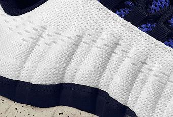 Ces Nike Air Max 95 EM Beaches Of Rio ont une base en Engineered Mesh blanc contrasté par du daim bleu navy, du mesh bleu, des accents d’orange et de rose, complété par une semelle intermédiaire mouchetée.