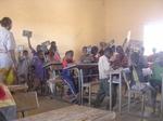 Ils sont environ 60 par classe, assis par 5 sur des bancs pour 2. ils sont extremement sages, attentifs et participent beaucoup. cela m'a touchée de voir cette envie d'apprendre. S'ils sont à l'école c'est que leurs parents ont dû payer et ils savent qu'ils n'ont pas tous cette chance.