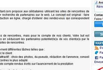 « Vous séduisez sur les sites de rencontres, mais pour le compte de nos clients. Votre but est d’organiser des rendez-vous en séduisant les partenaires potentiel(le)s de vos client(e)s par le biais de messages sur les sites de rencontres. »
