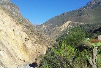 La descente vers l’oasis se fait avec en point de mire, les piscines toutes bleues depuis les hauteurs, les palmiers et les chutes d’eau qui alimentent les piscines. Une source d’eau intarissable qui a créé l’oasis protégée au fond du canyon.