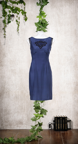 Pour les mariages et autres occasions qui se multiplient en été, on opte pour une robe en satin de soie. Une robe entre marine et émeraude avec empiècement en dentelle de Calais.Robe en soie, French Demoiselles.