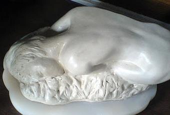 terre crue, blanche, cirée sur socle en marbre