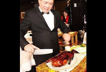 Après les pommes d'amour, mini ravioles de crevettes ou de poulet, de « simples » amuses-bouche, le king crabe mariné au brocolis, la salade de mangue aux crevettes et noix de Saint-Jacques (cuisine Thaï), et l'assortiment de « vapeurs », ravioles de coquilles Saint-Jacques, crevettes, et poulet, la joueront telle une « cavalerie » gustative appelée en renfort ! Le canard laqué à la Pékinoise (l'un des deux meilleurs de Paris dirons certains aficionados) en trois services d'exception, n'aura pas de gros efforts à fournir pour nous persuader de ses qualités. En premier service, la peau caramélisée et sa crêpe associée, en second, la chaire du canard sautée aux légumes, puis, en troisième service, aux nouilles croustillantes, une façon de s'allonger sur un lit moelleux, mais ferme à croquer !