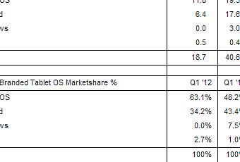 Ces chiffres concernent les tablettes de tous les constructeurs et regroupent donc un large panel de terminaux. Mais tout de même. 6 mois après le lancement de Windows 8 et RT, l’OS de Microsoft obtient une part de marché de 7,5% bien sûr, iOS et Android restent largement devant, mais c’est déjà un bon début.