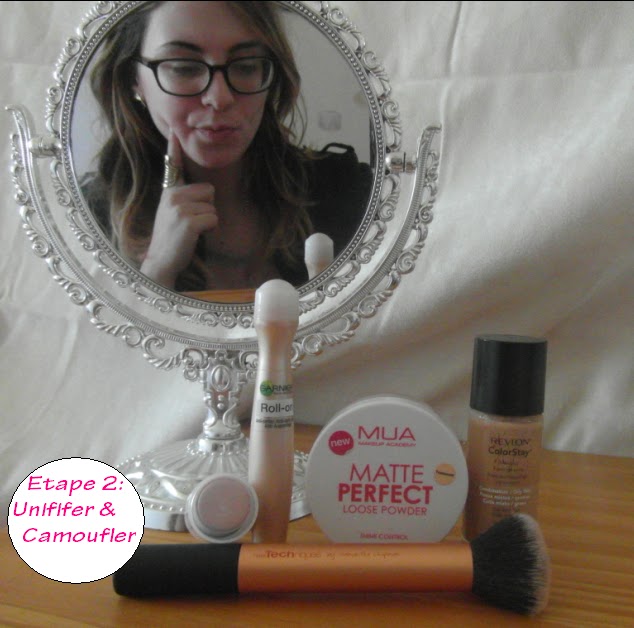 L'étape suivante consiste à venir unifier mon teint et à camoufler les petites imperfections qui chez moi se localisent près de la bouche.Après avoir appliqué mon fond de teint actuel le Revlon Colorstay à l'aide soit de mon pinceau Sigma sois de mon Real Technique, j'illumine mon dessous de l'oeil avec le Roll-On de Garnier.Ce roll-on est vraiment super en terme d'application: je suis fan de sa fraîcheur et de sa couvrance !