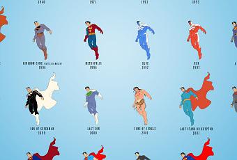 L’artiste a posté sur deviantart un petit visuel reprenant les nombreux costumes de l’homme d’acier. Du premier en 1933 à celui de Man of Steel, il y en a beaucoup. Cela permet de constater qu’au fil des comics, Superman a changé maintes fois de costume, en revenant finalement régulièrement dans son costume de base.